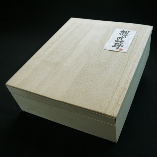 小さめの木箱に入った「想いの茸」はちょっとした贈り物に最適のサイズです。