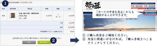お買い物がお済みになりましたら、カートの中の購入商品やお支払い金額をご確認ください。