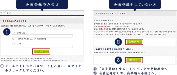 ※会員登録すると一度トップページに戻ります。再度、カートの中から購入手続きにお進みください。